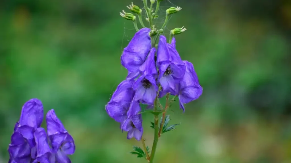 El «Guante de Monje»: El nombre común inglés «Monkshood» (capucha de monje) y «Casco de Júpiter» aluden claramente a la forma de la flor, que se asemeja a la capucha de un hábito monástico o al casco de un dios guerrero.